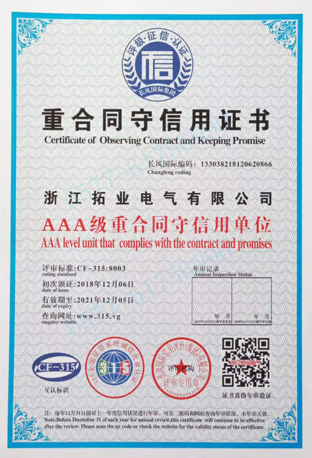 • 拓業電氣公司認為為國家、為社會、為客戶創造價值就是我們的存在價值。更管用、更耐用、更安全、更可靠,是我們質量管理的基本原則,我們通過努力為合作伙伴創造價值,才能體現自身的價值并獲得發展和成功......